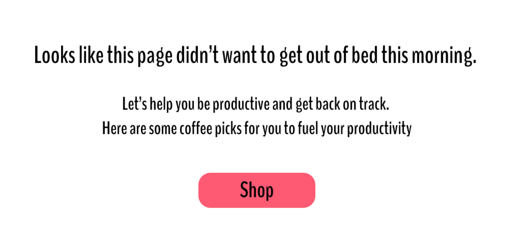 Taking this annoyance into consideration, I created a 404 page for Blend& Bean that injects lightness while steering the user back to researching and purchasing a coffee subscription.